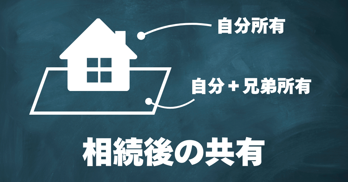 次の図のように,相続後に敷地が兄弟の方などと共有の状態になった場合は,これまでと異なった問題も出てくるので注意です。